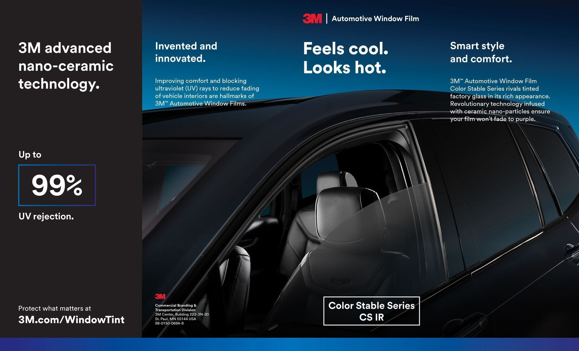 Experience advanced heat rejection and crystal-clear clarity with the 3M Ceramic IR Series. Designed with nano-ceramic technology, it blocks up to 99% of UV rays and offers excellent infrared heat rejection—without interfering with electronics. Sleek, durable, and backed by a limited lifetime warranty.
